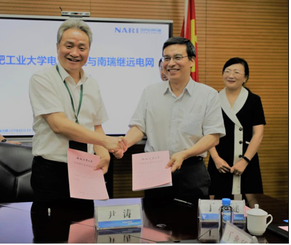 8月14日,我院与安徽南瑞继远电网技术有限公司(以下简称“继远电网”)的实习实训基地和战略合作框架性协议签字仪式在继远电网举行。院长丁立健,副院长黄海宏,学院老师孔慧芳、张晶晶、李奇越;继远电网执行董事、书记尹涛,副总经理、总工程师杨可军,新能源部经理谢红福,研发部经理张可,综合办主任王玉红,联合实验室副主任丁兆硕,联合实验室技术总监徐梁等参加仪式。