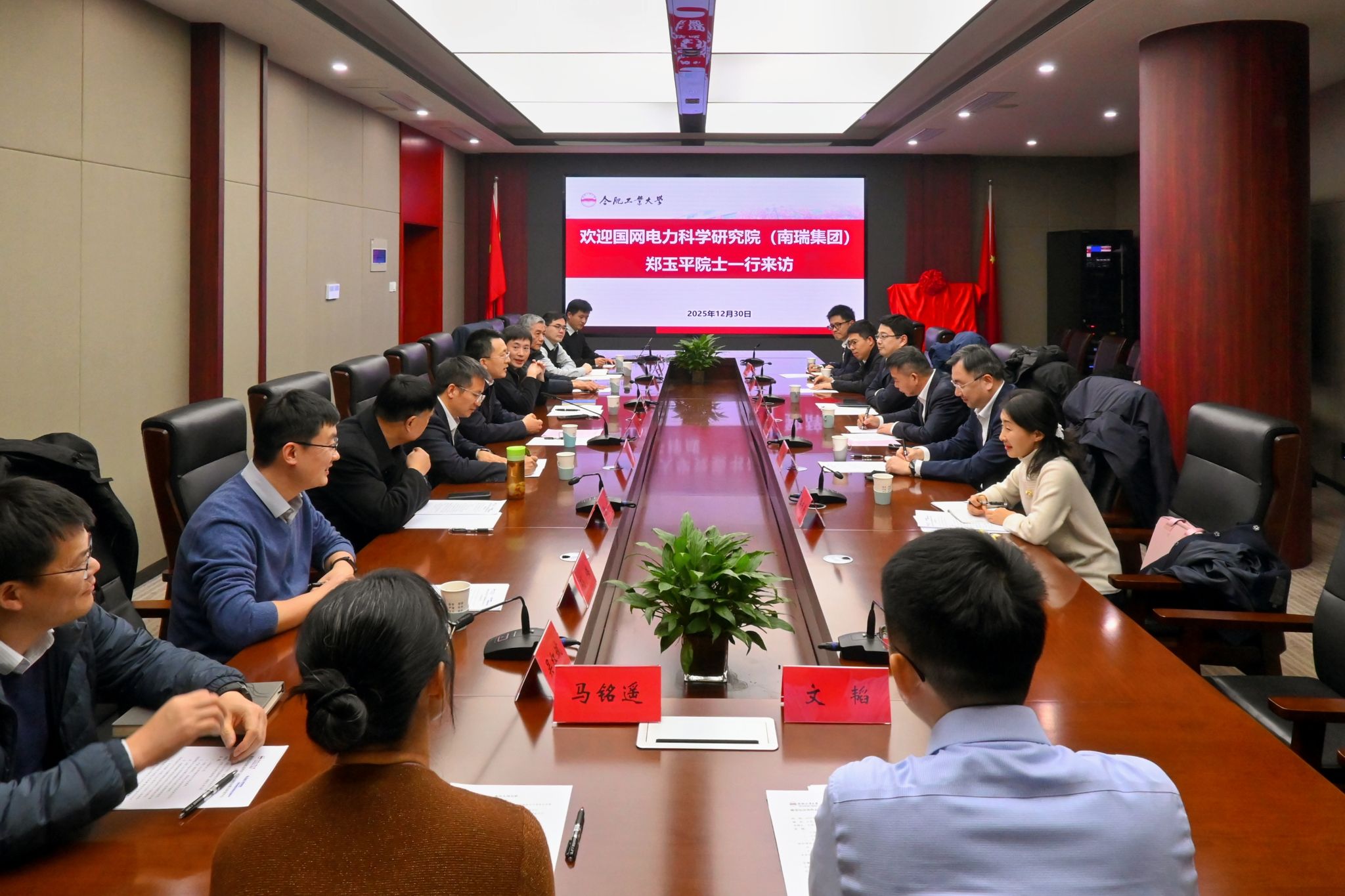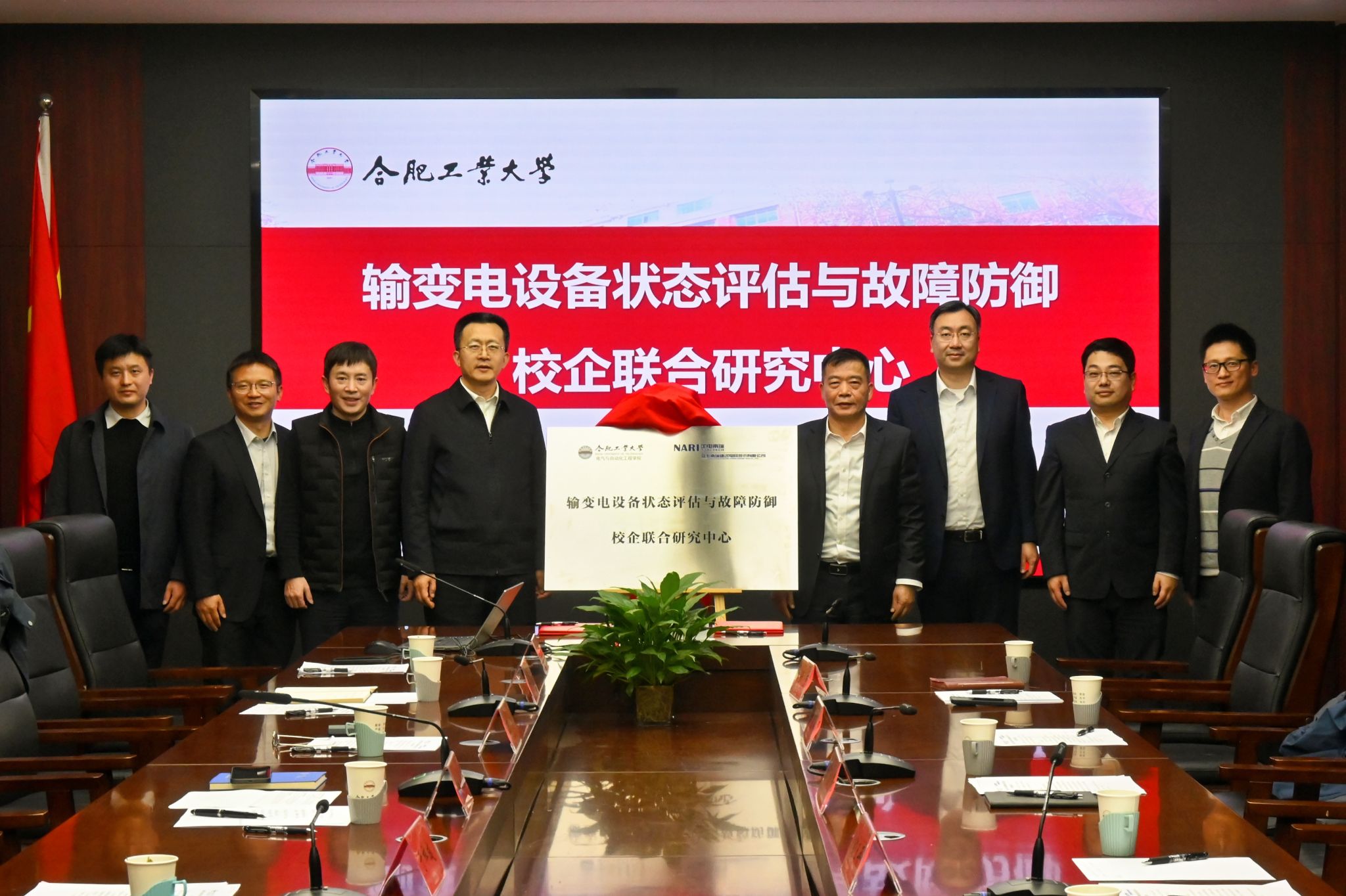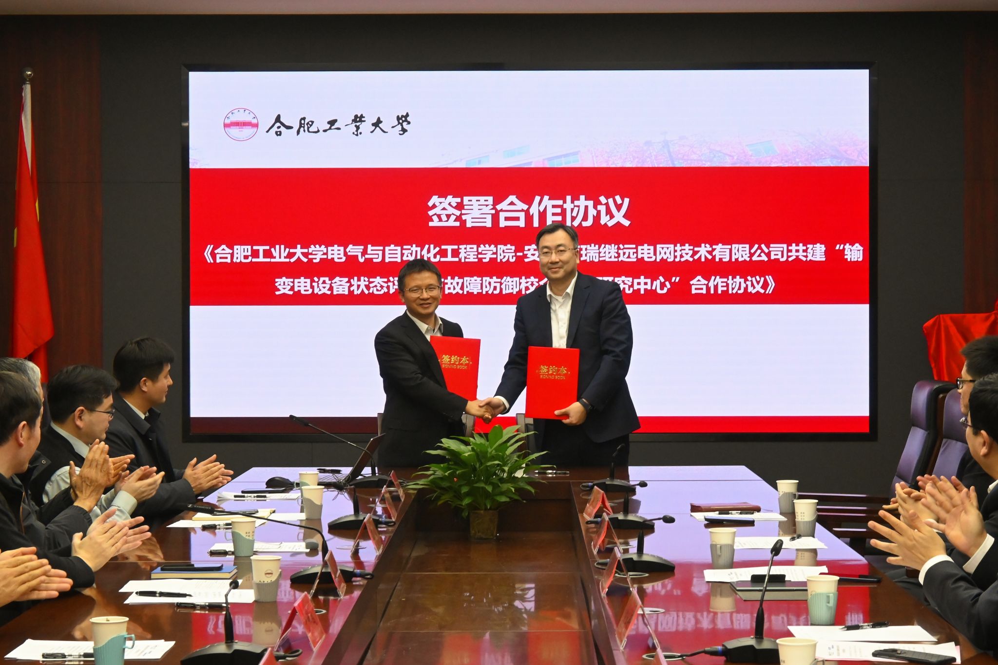 -安徽南瑞继远电网技术有限公司共建“输变电设备状态评估与故障防御校企联合研究中心”合作协议签署与揭牌仪式。校党委书记于祥成出席会议,校党委常委、副校长洪日昌主持会议。