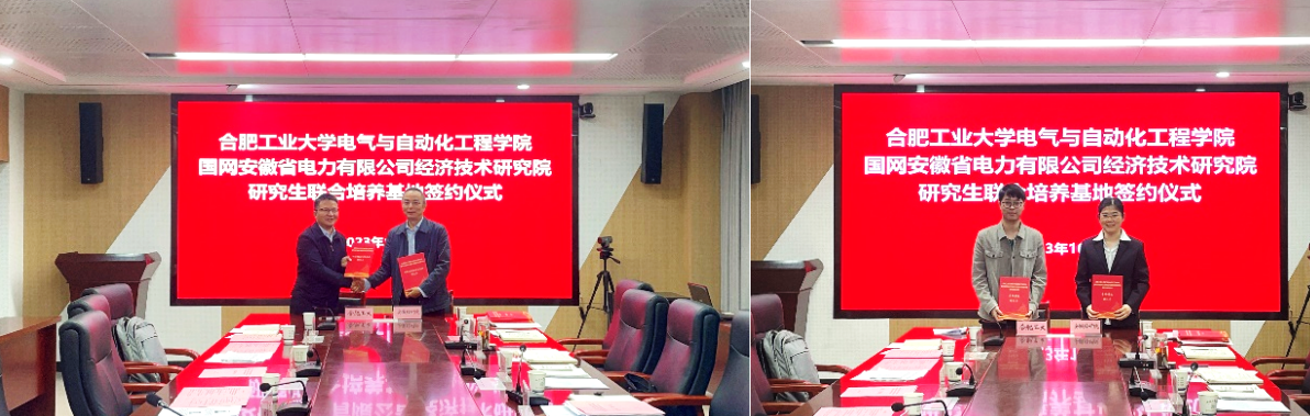 10月12日上午,午夜AV —国网安徽省电力有限公司经济技术研究院研究生联合培养基地签约仪式暨交流座谈在逸夫楼1009举行。双方将在新型电力系统规划与运行领域的人才培养、发展战略、实验室共享联建及联合技术攻关等方面开展深度合作。