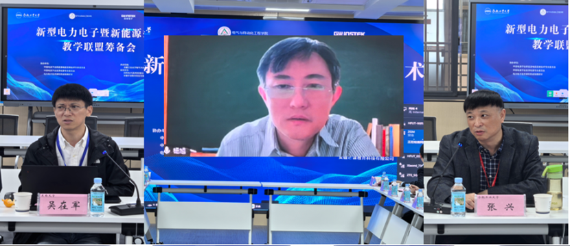 电气学院副院长黄海宏教授主持会议,教育部高等学校电气类专业教学指导委员会秘书长东南大学吴在军教授、中国电源学会直流电源专委会主任委员西安交通大学电气学院院长杨旭教授(线上)、中国电源学会新能源电能变换专委会主任委员午夜AV