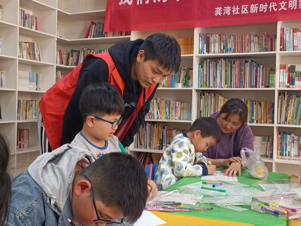 阳光志愿服务中心志愿者前往龚湾社区开展“我们的节日——清明节手抄报”志愿服务活动。
