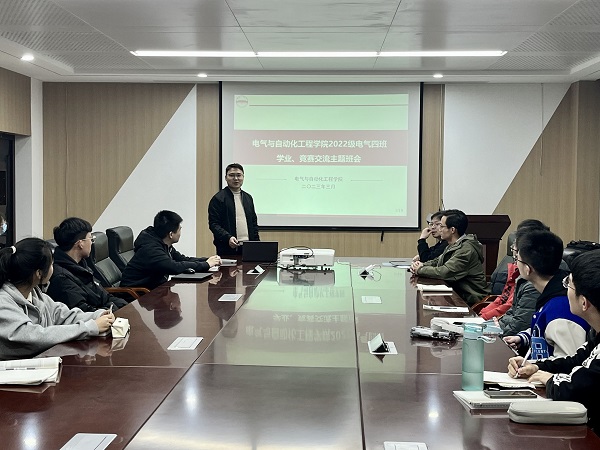班主任围绕目标确立、学习指导、科技创新,生涯规划展开叙述,提出大学四年的整体规划建议以及对班级同学的期望,就同学们关注的“互联网+”大学生创新创业大赛、“挑战杯”全国大学生系列科技学术竞赛和大学生创新创业训练计划项目等进行详细介绍。2020届智能电网信息工程专业毕业生叶寿洪分享自己的求学和工作经历,建议同学们如何平衡好学业和学生工作的时间和精力,分享了自己在贵州省黔东南州剑河县岑松小学支教一年的过程和感悟,鼓励学弟学妹积极参与学生工作和社会实践活动,做好个人时间管理。电气工程专业2019级硕博生王书来从竞赛分类、具体介绍、开展过程和感悟心得等多方面开展分享,尤其是竞赛前期准备阶段、实施阶段以及答辩阶段的注意要点,从组建队伍、确定选题、撰写申报书、补充附加材料和展示等方面进行展示,内容详尽,鼓励学弟学妹“敢想,敢闯,敢做”,不断开拓创新思维、奋勇向前。在互动环节,班主任和两位学长进一步解答了同学们关于大学的“疑难杂症”,就大学时光如何“争渡”,如何平衡学习与第二课堂活动等问题开展了交流,全体同学纷纷表示受益匪浅。