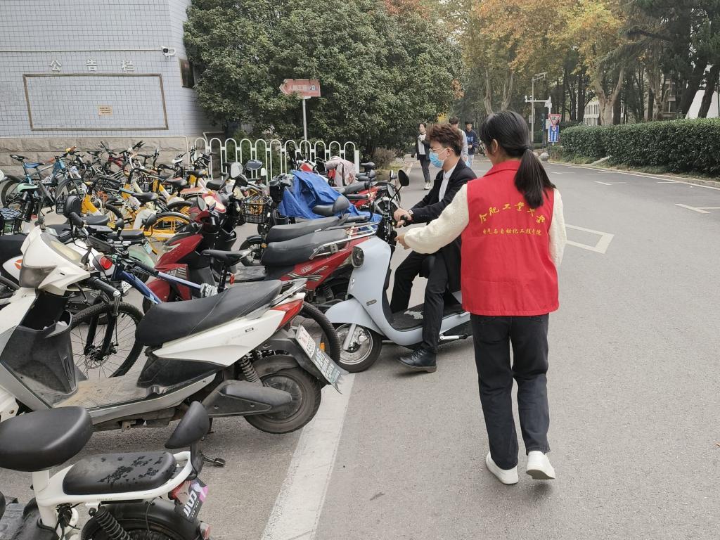 志愿者们认真负责,积极引导,准时站好每一班岗,将不规范停放的电动车和自行车逐辆摆放整齐,并耐心细致地指导帮助后续到来的师生有序停放。在志愿者的共同努力和师生的积极配合下,停车区域秩序井然,禁停区域无车停放,打造了文明有序的校园景象。