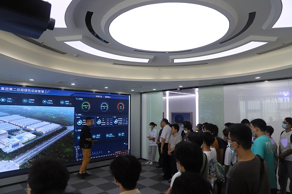 在讲解人员的带领下,全体师生首先参观了公司数字化展示中心,了解了双杰集团数字化为核心的全产业生态链,智慧能源领域建设运营一体化综合能力,绿色出行领域拥有重卡换电、充电桩一站式方案解决能力等综合概括;详细参观了展厅展示的全绝缘系列产品、高低压成套设备、箱式变电站、电缆分支箱和自动化保护设备等自主创新科技产品;实地走访了公司图书馆、健身房、员工餐厅等设施。