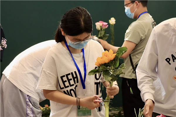 随后,活动负责的同学详细讲解示范了花束制作的要领和技艺,耐心地指导、帮助同学们修剪花枝、做造型,带大家亲手体验插花艺术。在花香四溢的悠闲氛围中,同学们兴致勃勃,根据不同的色彩、形状精心搭配,充分发挥自己的想象力和创造力,一件件各具特色的插花作品呈现在大家面前。每位同学现场拨通视频,将自己亲手制作的花束,云端送给妈妈,并表达了对妈妈节日的祝福,脸上都洋溢着满满的幸福感。