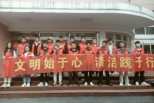 研会志愿者们对研究生公寓开展全面清洁消毒活动。