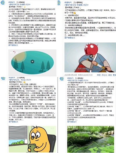 以 “世界气象日”“世界水日”“世界森林日”等三月重要节日为契机,开展“看电气新卫视、学健康小知识”线上生态文明宣传周活动。