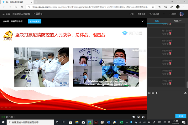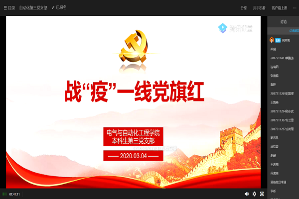 3月4日-5日,电气学院本科生党支部“云中党课”开讲。各支部书记分别以线上直播方式讲授《战‘疫’一线党旗红》《做‘疫’名先锋,守一份初心》和《抗击疫情守初心,防控一线践使命》专题党课。