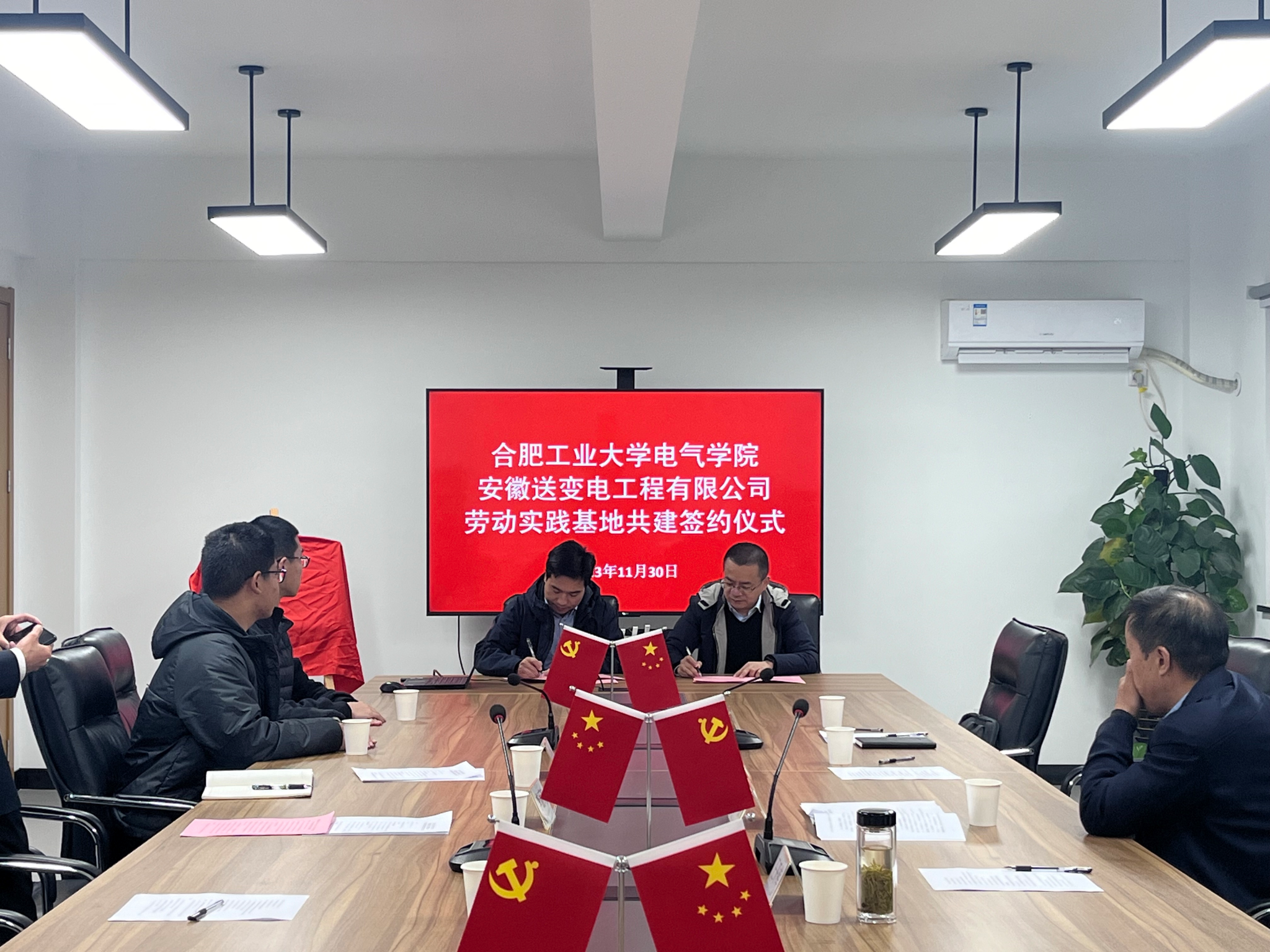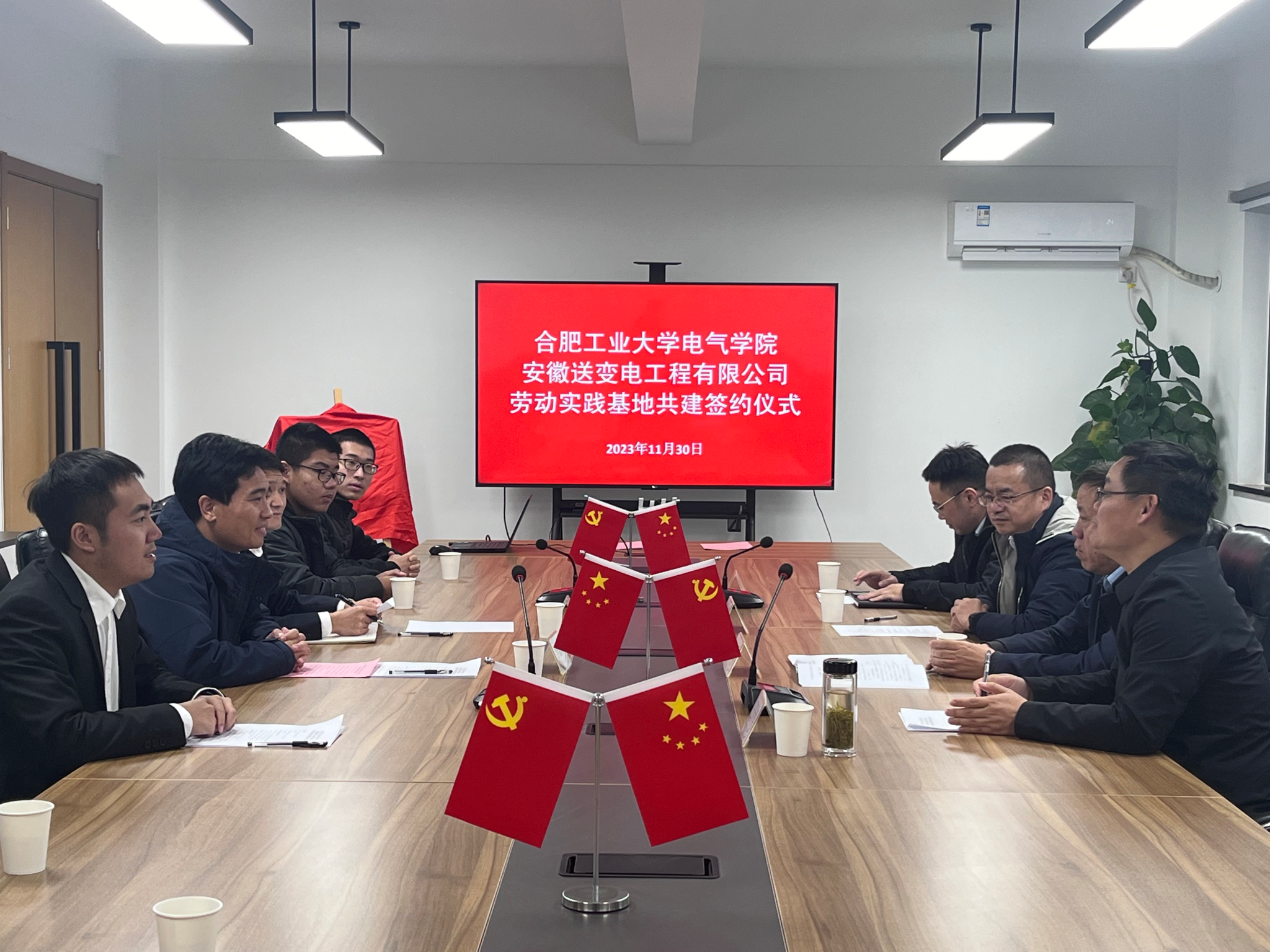 与安徽送变电工程有限公司共建大学生劳动教育实践基地签约揭牌仪式在送变电工业园会议室顺利举行,安徽送变电工程有限公司纪委书记、工会主席孔闻,全国劳动模范、安徽送变电工程有限公司三级职员王开库,安徽送变电工程有限公司党委组织部(人力资源部)主任陈文斌、副主任宋宇飞,午夜AV