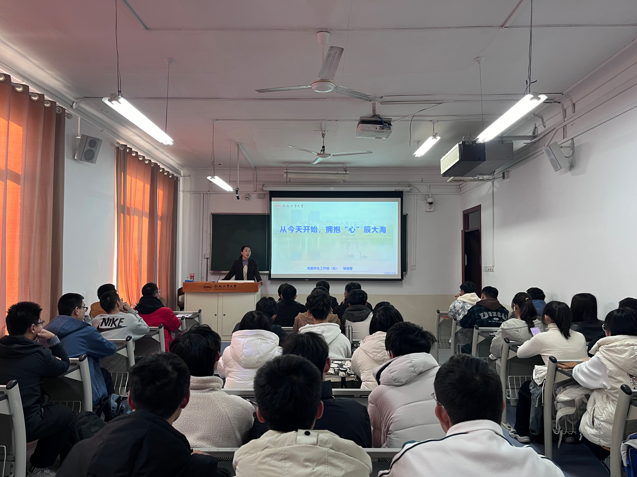 于主教学楼306组织开展新生成长发展引导教育第一课专题精讲暨“熠见·青心”主题班会,校心理健康教育与咨询中心主任邹佳莹受邀担任主讲人,学院2023级本科新生辅导员,学生代表参与本次活动。