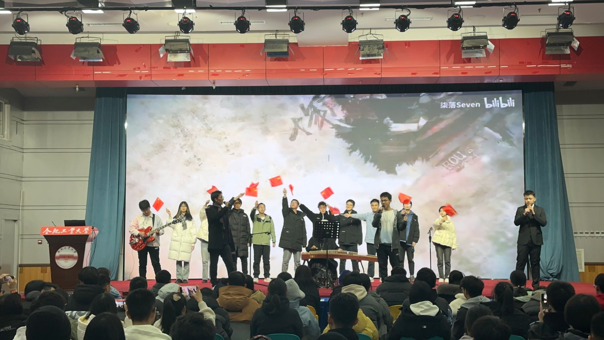 在第二篇章中,自动化23-2班的表演《少年中国说》通过合唱、朗诵、太极表演的形式歌颂青春朝气蓬勃、积极进取的清澈模样。自动化23-3班表演的舞台剧《一根红线系三代》通过交错时空深入挖掘人物内心世界,展现了革命崇高品质和伟大精神。合唱《灯火里的中国》展现祖国的胸怀辽阔、山河壮丽,抒发了自动化23-4班全体同学的咏国之心、爱国之怀、报国之志。机器人23-1班表演歌曲《山河图,丝绸》《十年人间》,朗诵《山高路远》将现代艺术与古典艺术形式相融,为观众呈现一场火热的视听盛宴。