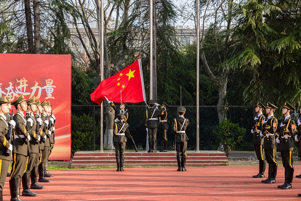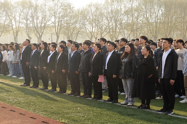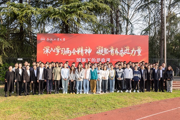 在屯溪路校区西操场举行“深入学习两会精神,凝聚青春奋进力量”主题升旗仪式暨国旗下的思政课,校党委学生工作部、学院相关负责人、辅导员以及全体本科生和研究生参加了活动。活动由学院团委副书记、学生工作办公室副主任左能主持。