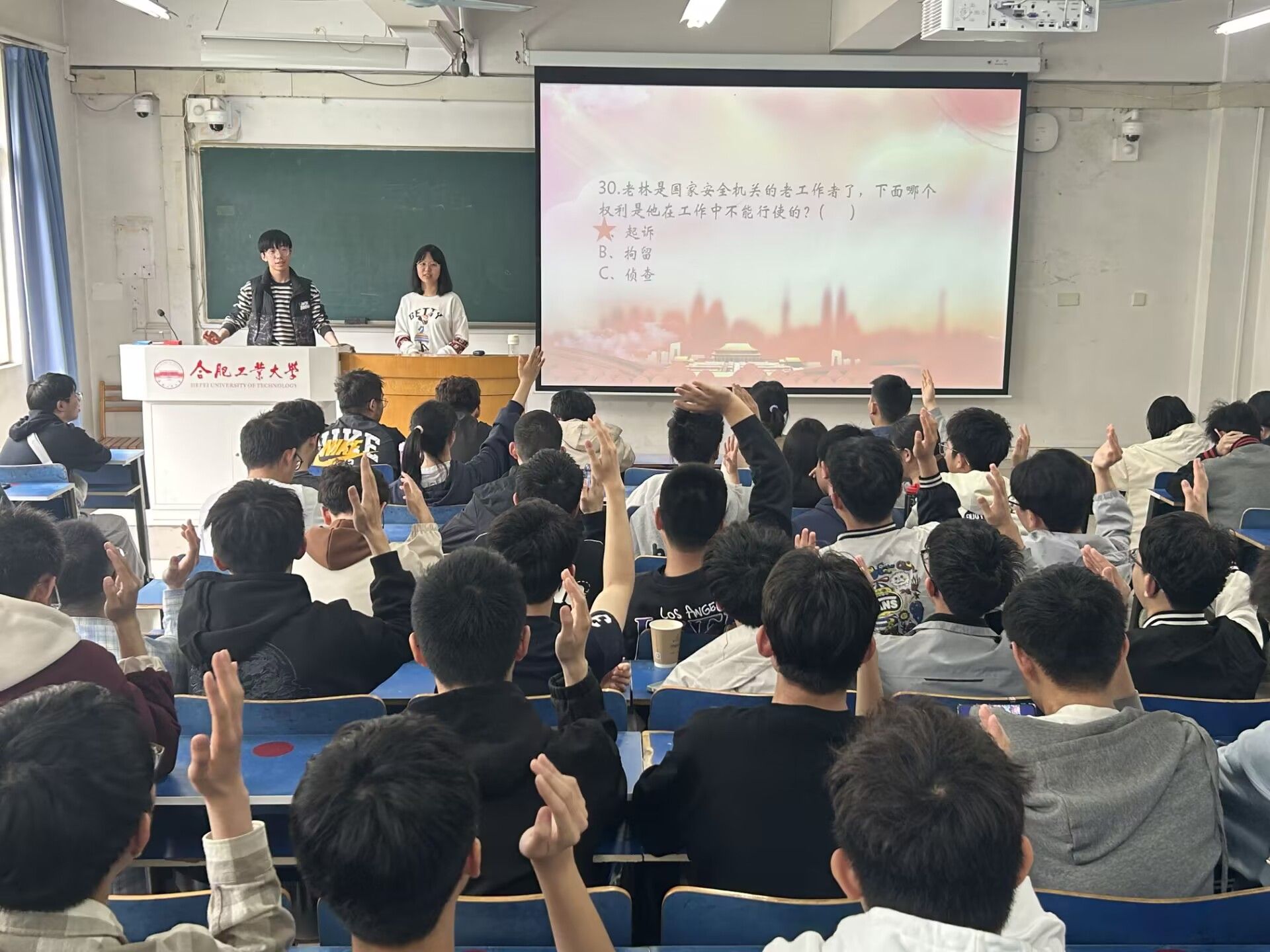 随后,支部开展了国家安全知识问答活动,通过每人必答、有奖竞答等环节提升学生对国家安全知识的了解程度,在答题中学习感悟,充实同学们的国家安全知识储备。再次呼吁同学们了解国家安全、关注国家安全、宣传国家安全、维护国家安全,自觉增强维护国家安全的意识,主动提高防范能力,时刻紧绷国家安全这根弦,人人参与、人人负责,共同夯实国家安全的基础保障。