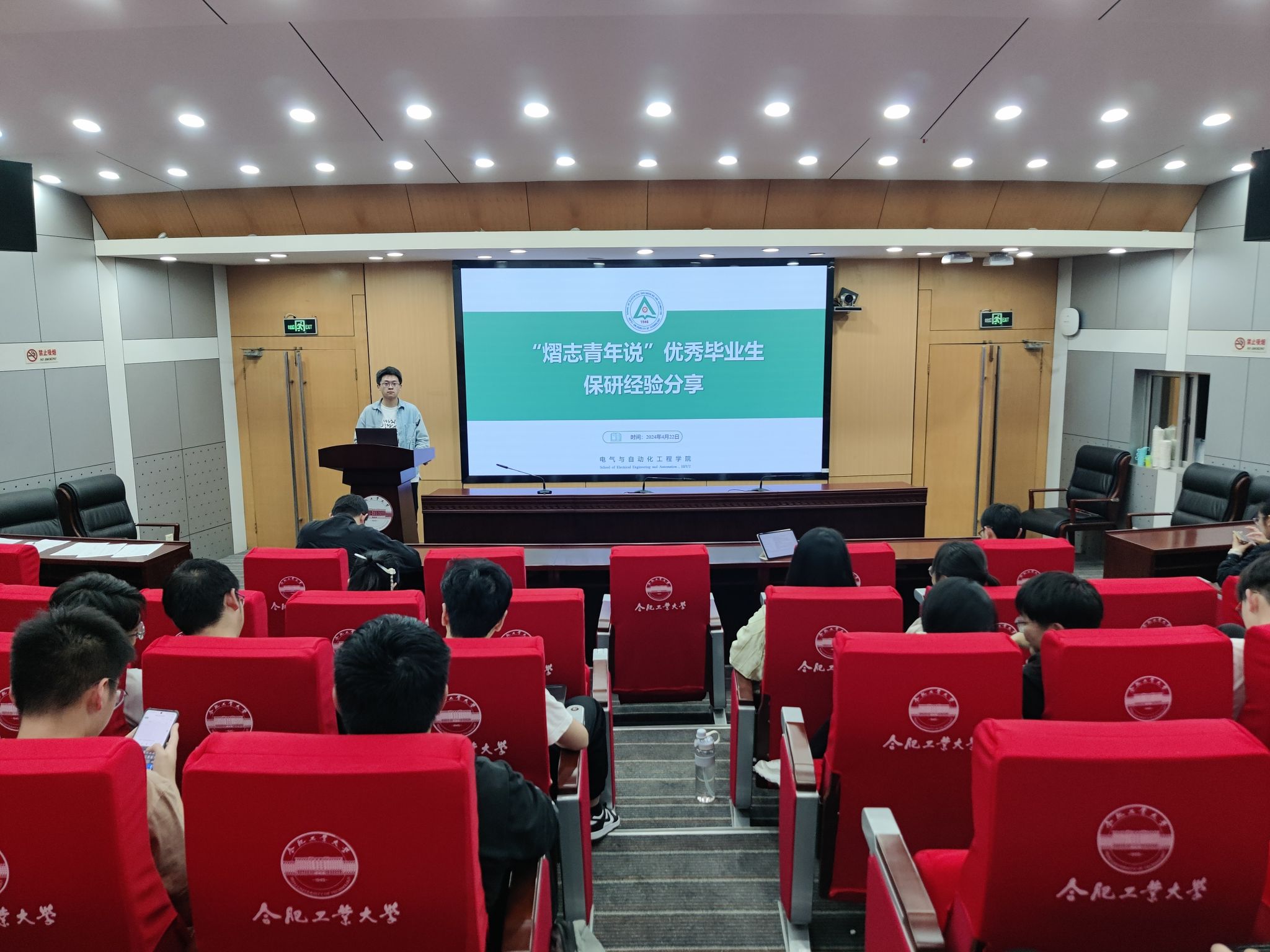 在学术会议中心二楼报告厅举行“熠志青年说”优秀毕业生保研升学经验分享会,五位推荐免试研究生应邀参加,与2021级学生畅谈感悟,共话未来。