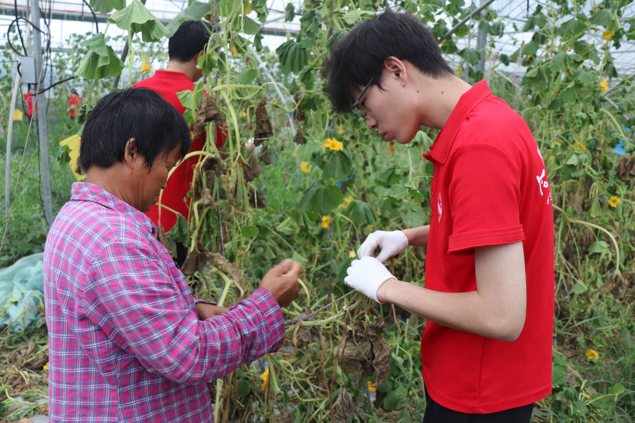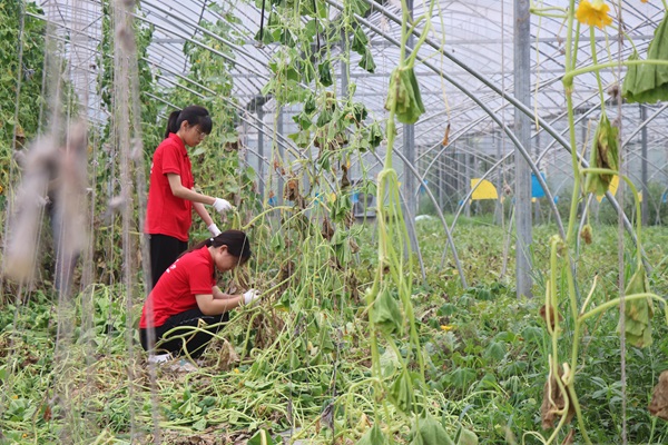 农户教实践队员如何清理南瓜藤曼
