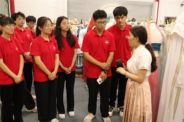 团队成员前往辰霏服饰有限公司,负责人周女士对基地内魏晋南北朝、唐朝、宋朝和明朝等各朝代传统服饰的风格及设计理念进行详细讲解,成员们还亲身体验汉服换装,深刻体会汉服文化的独特魅力与深厚内涵。