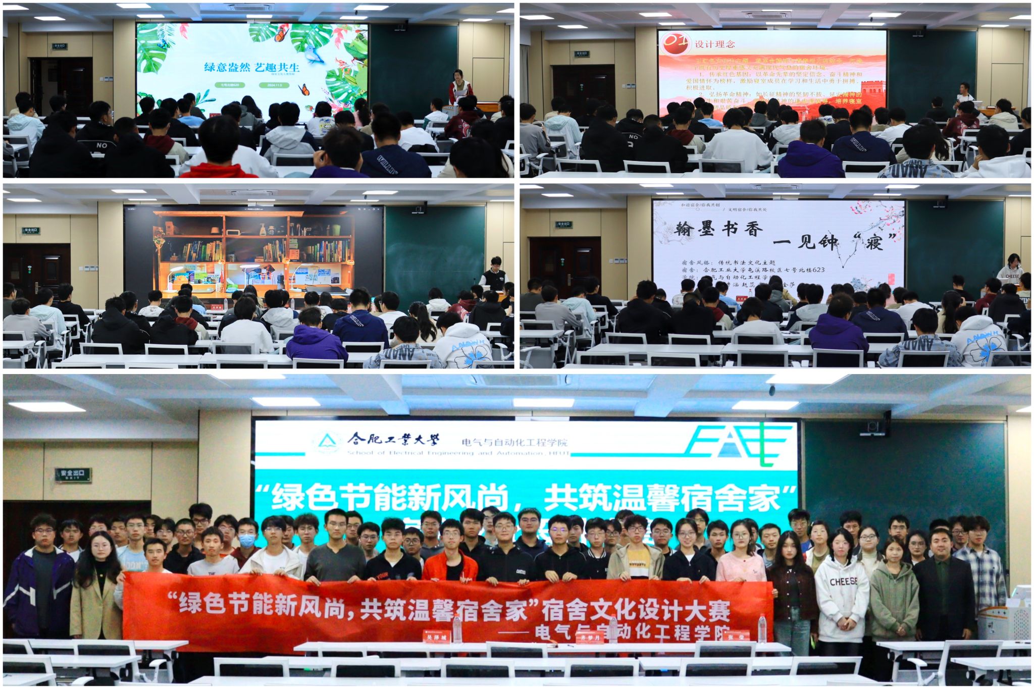 “绿色节能新风尚,共筑温馨宿舍家”宿舍文化设计大赛于逸夫楼1005会议室举行,学院相关负责老师、低年级60余名学生代表参加活动。