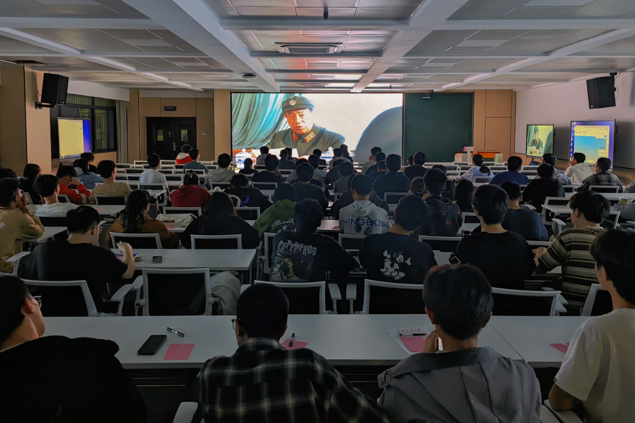 分党校于逸夫楼1005教室开展“忆峥嵘岁月,熠宏伟征程”主题观影与研讨,分党校相关负责老师、第十九期入党积极分子班全体学员参加活动。