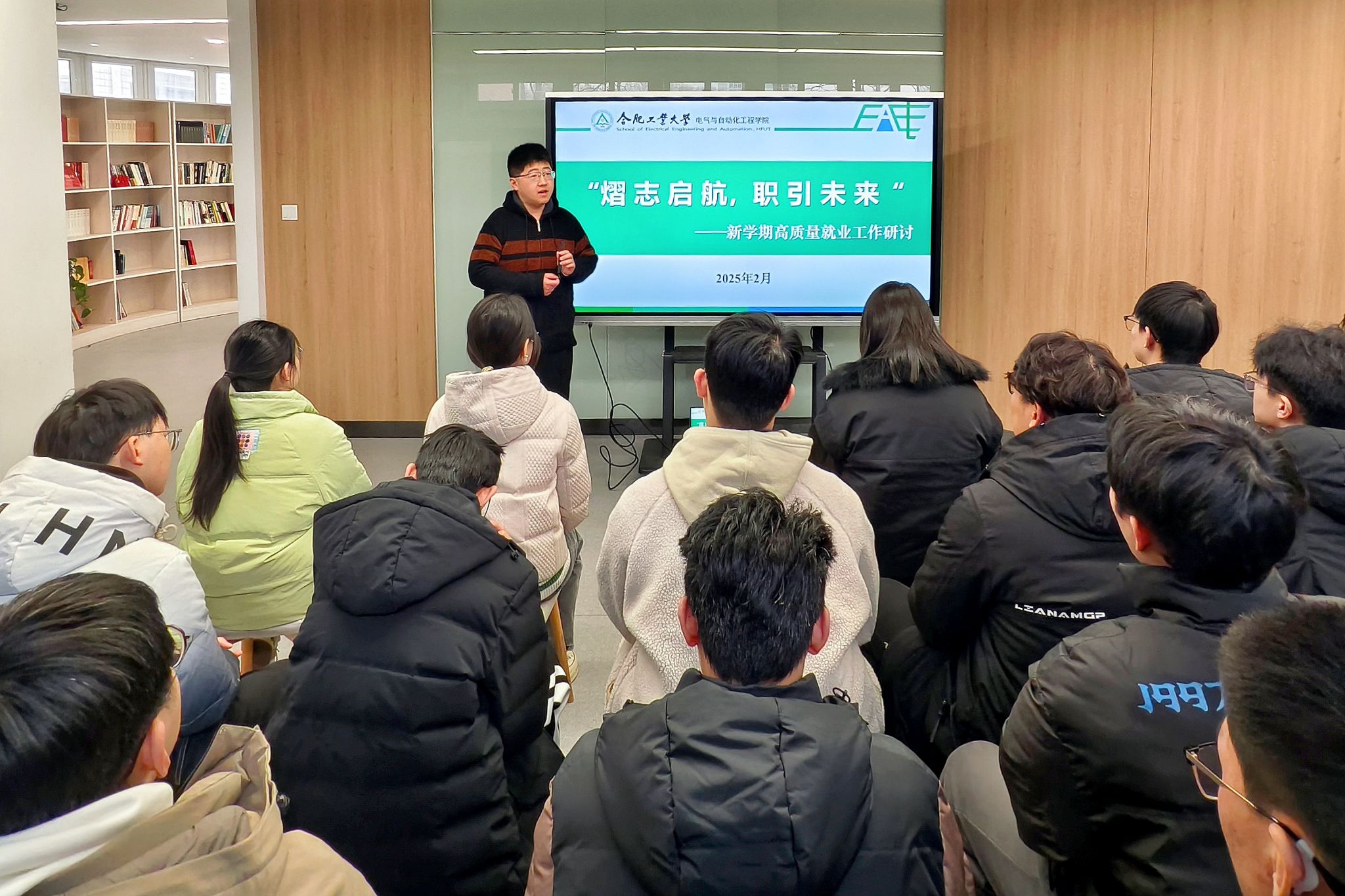 于屯溪路校区5号楼学生社区开展“熠志启航,职引未来”高质量就业工作研讨,2021级本科生辅导员、毕业班拟就业学生、班级学生骨干、就业助理参加。