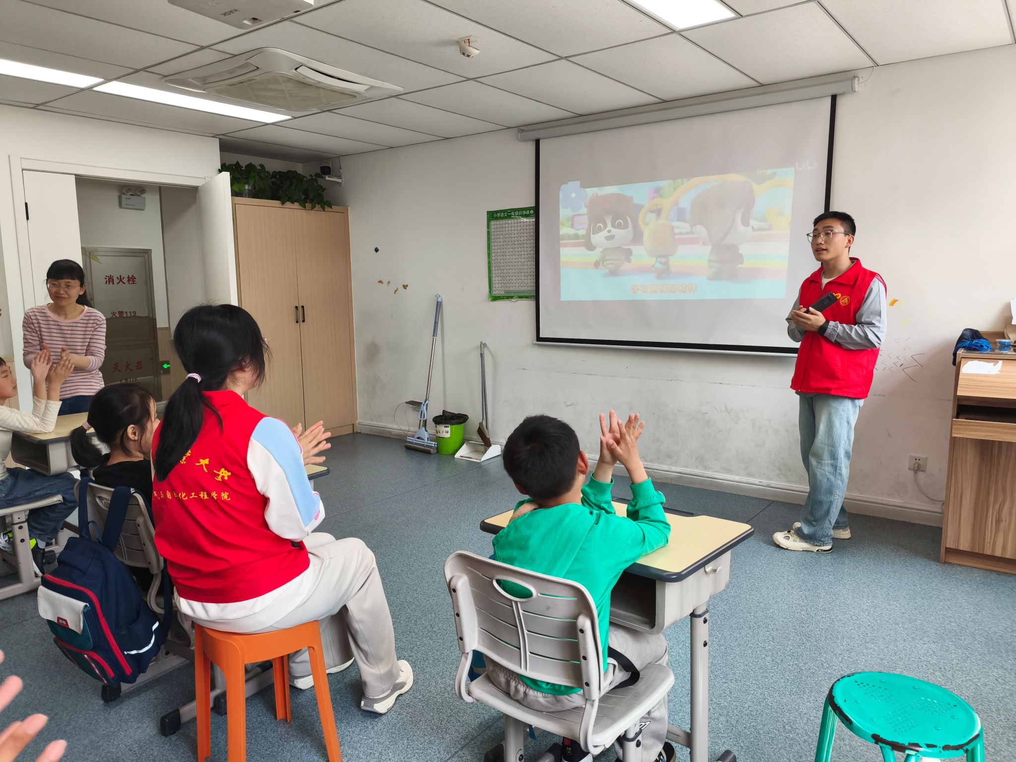 雷锋“熠”话,榜样引领。志愿者通过多媒体播放动画片,生动还原雷锋同志帮助战友、关爱老人等感人事迹。孩子们聚精会神地聆听,他们或许还不能完全理解雷锋精神的深刻内涵,但那些温暖人心的故事,已经在他们小小的心灵中种下了善良与爱的种子。