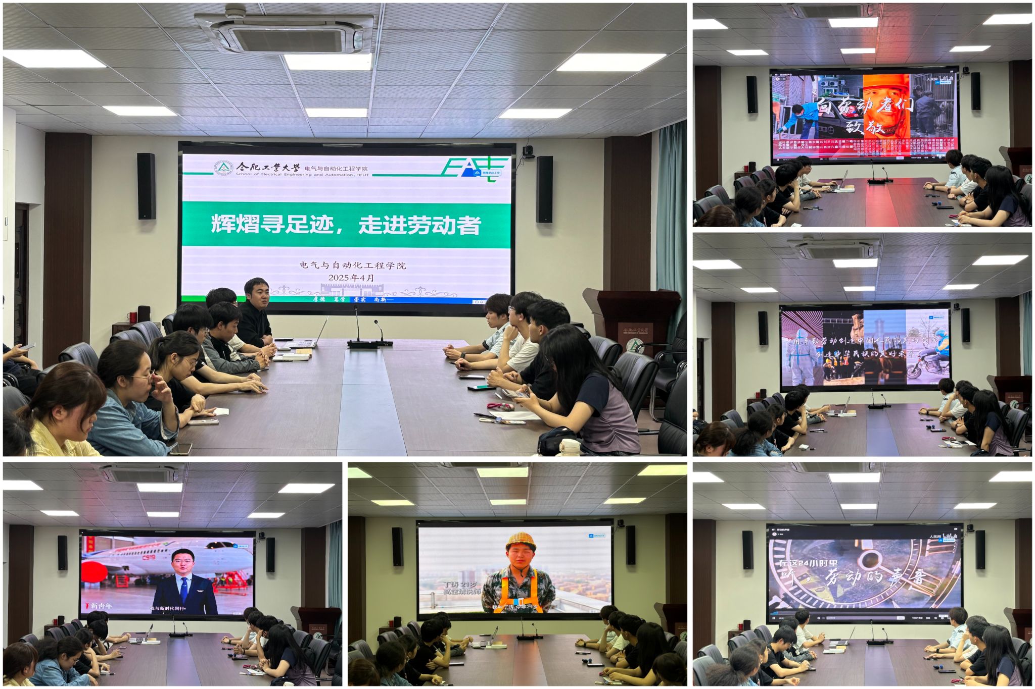 以字达意,执笔挥就致敬之语。4月28日,学院于逸夫楼1004开展“辉熠寻足记,走进劳动者”集中学习。学院负责老师在交流中谈到,要推动劳动精神往深里走、往实里走、往心里走,在生活中、学习中和以后工作中要摆脱形式主义窠臼,树立从立足私域到面向公共福祉的正确劳动观念,明晰以劳树德、以劳增智、以劳强体、以劳育美的目标,在劳动中绽放绚丽之花。会中,全体成员观看《新时代的劳动故事》《人民网:劳动的声音》《致敬劳动》《劳模记录工程》等主题教育视频,感悟无数守护万家灯火的人们的默默奉献。白日里的线上课堂和工地农耕、夜幕下的物流分拣中心和入境边检处、还有零点的钟楼和产房……全体成员围坐一堂,交流讨论对于劳动的不同理解,通过思维碰撞,每个人对自己笔下的文字有了更为深刻的认识。在轻松愉悦的氛围中,全体成员认真写下了想对劳动者述说的心声。