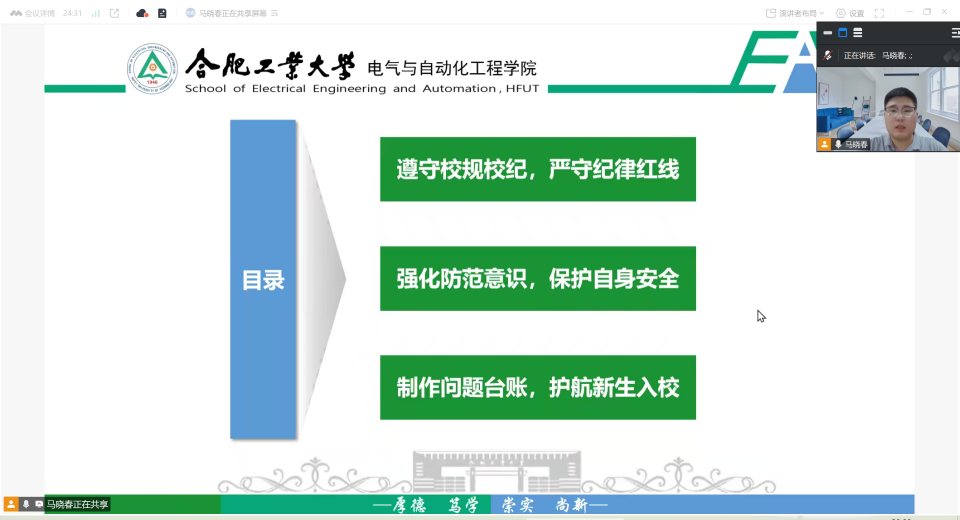 于8月27日晚召开“青听·熠程”新生教育会议,全体本科新生相聚云端,共话入学前准备与未来规划。