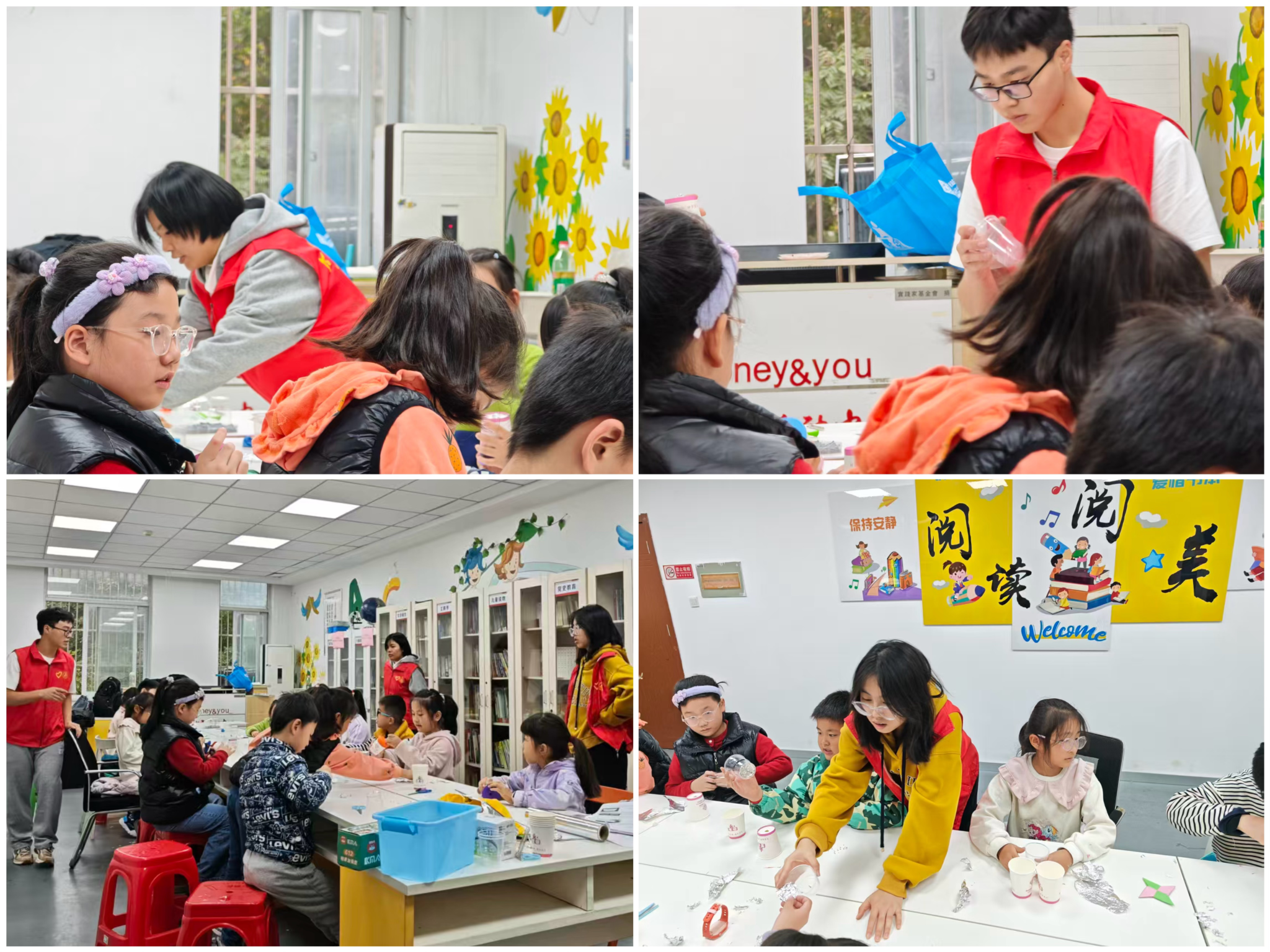 活动现场设置空气炮、会跳舞的锡纸球、熔岩灯三个趣味科学实验。空气炮实验中,志愿者提前代划纸杯孔洞保障安全,指导孩子们完成制作,通过气流冲击现象讲解压缩空气形成膨胀冲击波的原理;会跳舞的锡纸球实验里,孩子们揉捏锡纸球后,志愿者协助固定相关装置,主讲老师以摩擦带电铁棒引发锡纸球“跳动”,阐释电荷传递与相互作用知识;熔岩灯实验中,志愿者引导孩子们混合相关材料,借助化学反应产生的气泡结合灯光模拟熔岩效果,解读产气原理。系列实验让孩子们在安全操作与动手实践中,感受科学趣味、掌握基础科学知识。