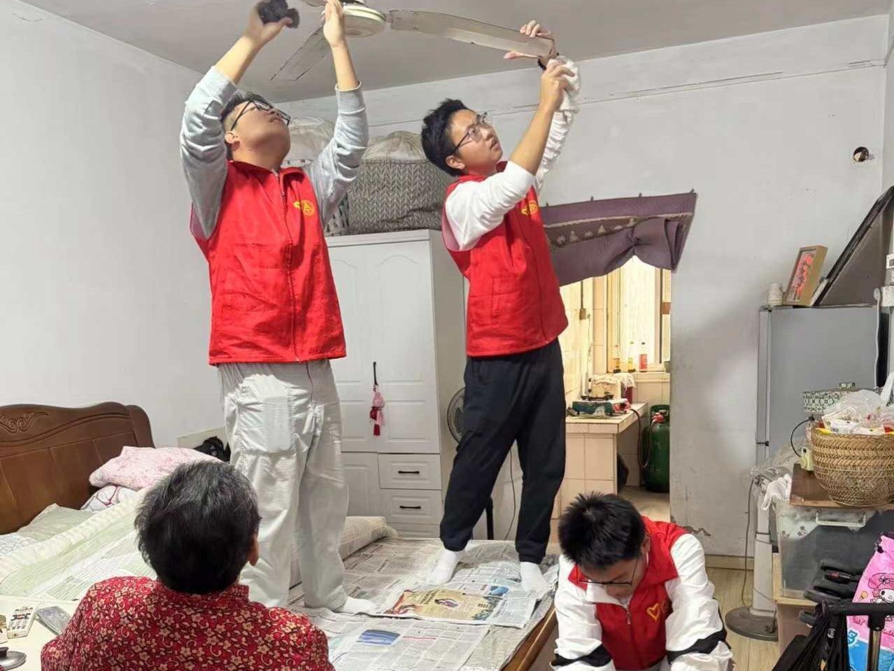 阳光志愿服务中心志愿者深入社区多个站点开展敬老便民服务。在曙宏居家养老服务站,志愿者用专业仪器测量血压,协助清理风扇积尘、整理晾晒被褥。在创景花园服务站,志愿者探望高龄老人并协助办理养老待遇认证并热情交谈。在炮竹村服务站,统计社区租房情况统计、租客变动整理及信息填报工作。
