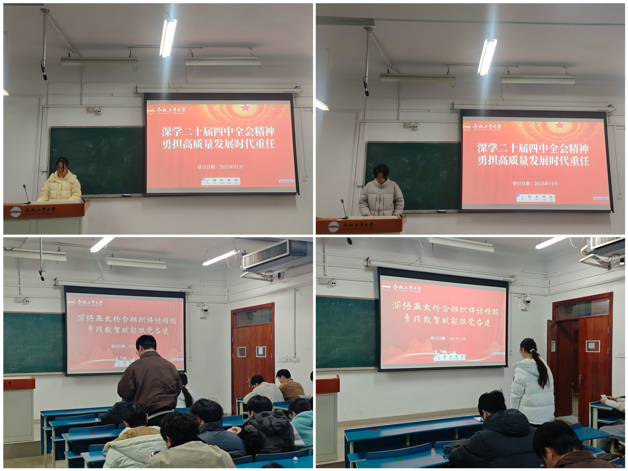 研讨围绕“锚定十五五航向,青春铸魂跟党走”“深学二十届四中全会精神,勇担高质量发展时代重任”“深悟亚太经合组织讲话精髓,勇践数智赋能跟党奋进”三个主题展开。学员们结合专业特色深入研讨,纷纷表示要锚定“十五五”发展目标,将个人成长融入国家发展大局;深刻领会二十届四中全会精神核心要义,在高质量发展征程中主动担当作为;深入理解亚太经合组织讲话中数智赋能的发展导向,以工科专业所长践行科技报国使命,在数智领域勇攀高峰、跟党奋进。