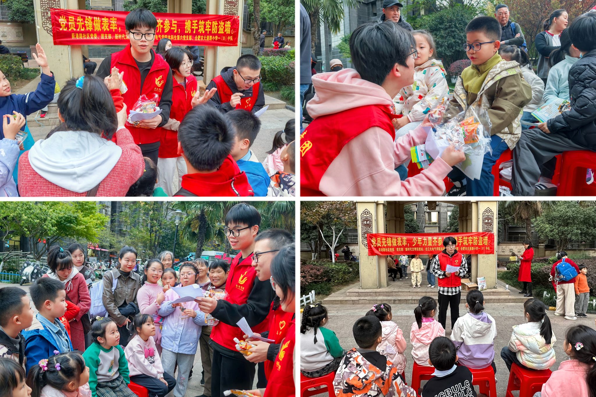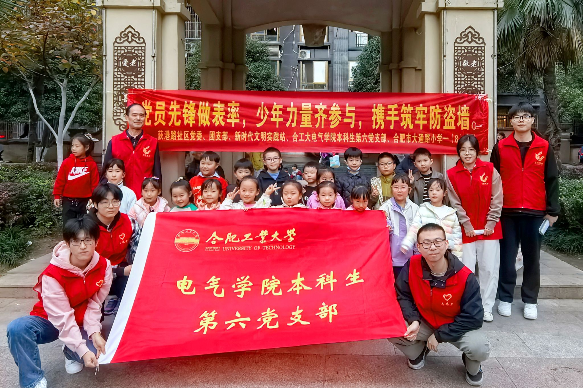 赴瑶海区和平路街道荻港路社区开展“党员先锋做表率,少年力量齐参与,携手筑牢防盗墙”主题活动。学院本科生第六党支部师生代表、社区相关负责同志、大通路小学学子、社区“红色小管家”等参加。