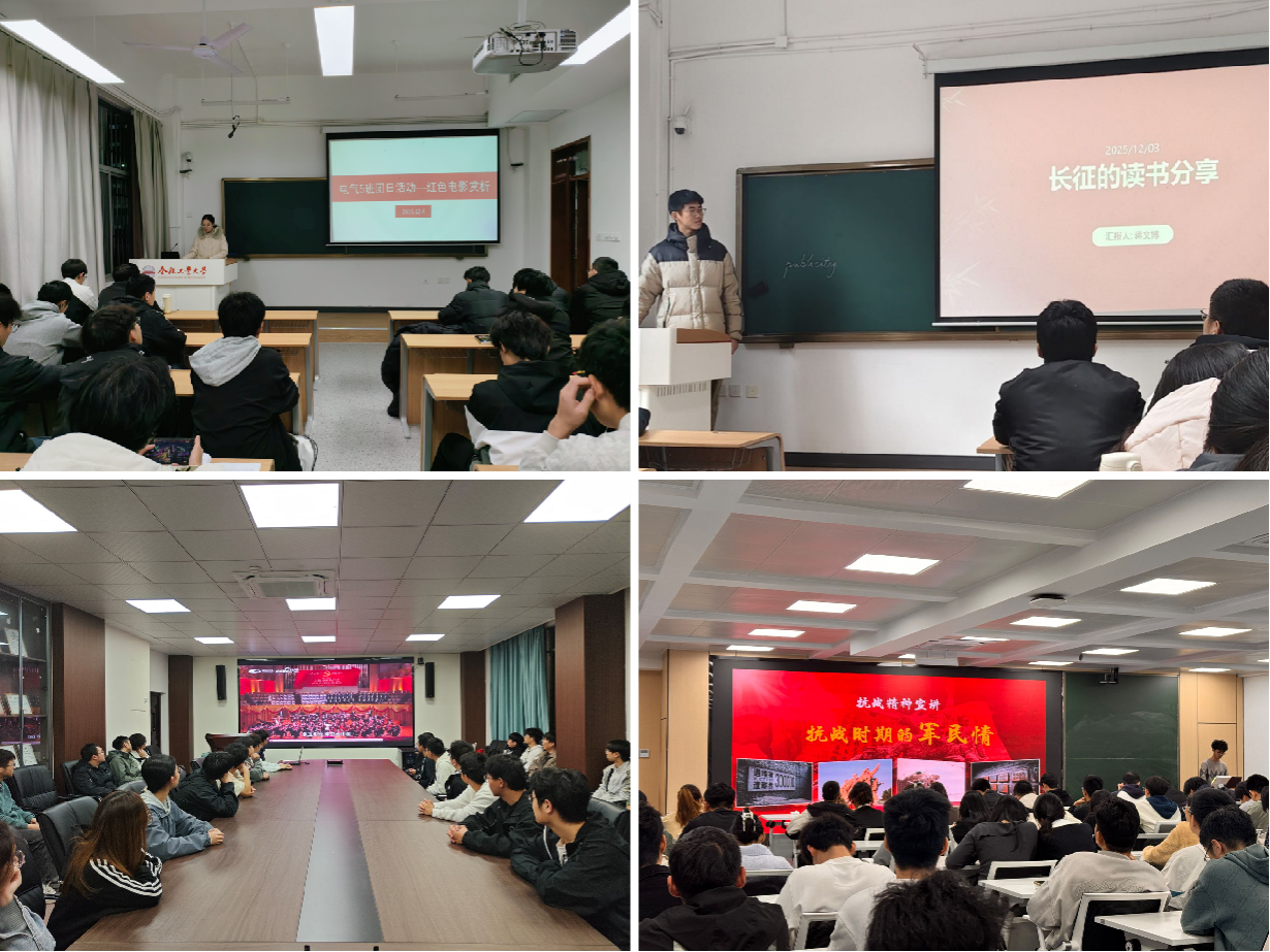 理论铸魂,明晰使命担当,锚定前行方向。学院聚焦中国式现代化、青年使命、工大担当等主题,以专题教育与主题研讨强化青年使命担当。11月下旬,分团校开设4期专题团课,分党校同步开展3期主题研讨,通过回望新中国发展历程、追溯工大“工业报国”初心,结合电气优秀校友案例,引导学子规划成长路径,将学科优势转化为服务科技强国战略的实际力量。12月中旬,本科生第一党支部以“国家公祭日”为契机开展专题理论学习,结合校友投身强国建设的鲜活事迹,引导党员铭记历史、砥砺初心,以实干践行青年党员的责任担当。