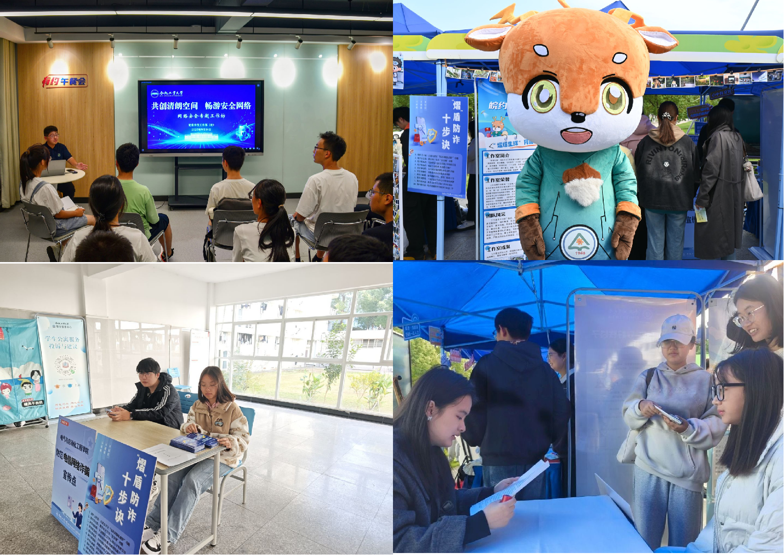 朋辈领航,激活朋辈效能。9月-12月期间,学院依托网络工作坊,对学生骨干开展3次专业化培训,夯实其反诈知识储备与宣传能力。着力打造“熠盾十步诀”宣传特色品牌,让反诈知识以更具辨识度的形式入脑入心。10月份,借助网络文化节契机举办反诈网络集市,以趣味互动形式开展“熠盾十步诀”等反诈知识普及;11月-12月期间,学院依托学生社区设立反诈宣传点,并发动朋辈宣传员深入宿舍开展反诈宣传,让防护知识直达学生身边。