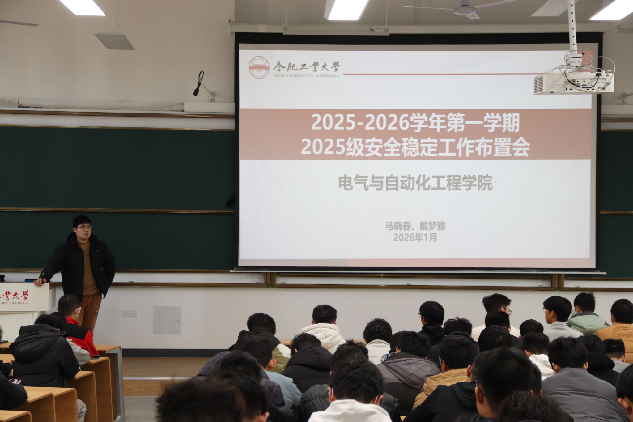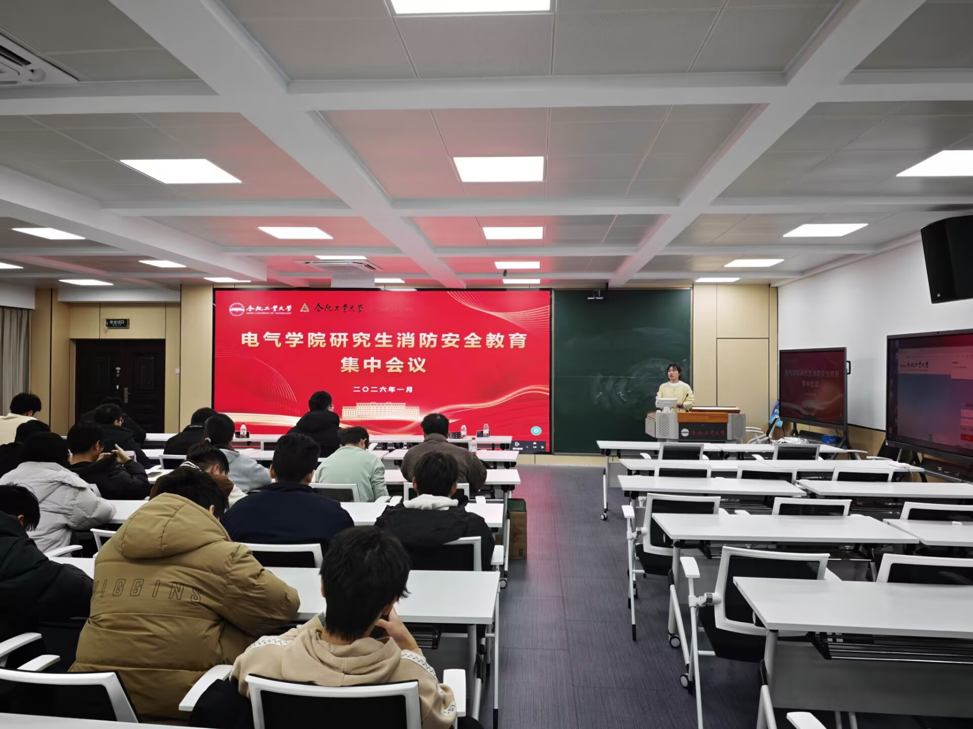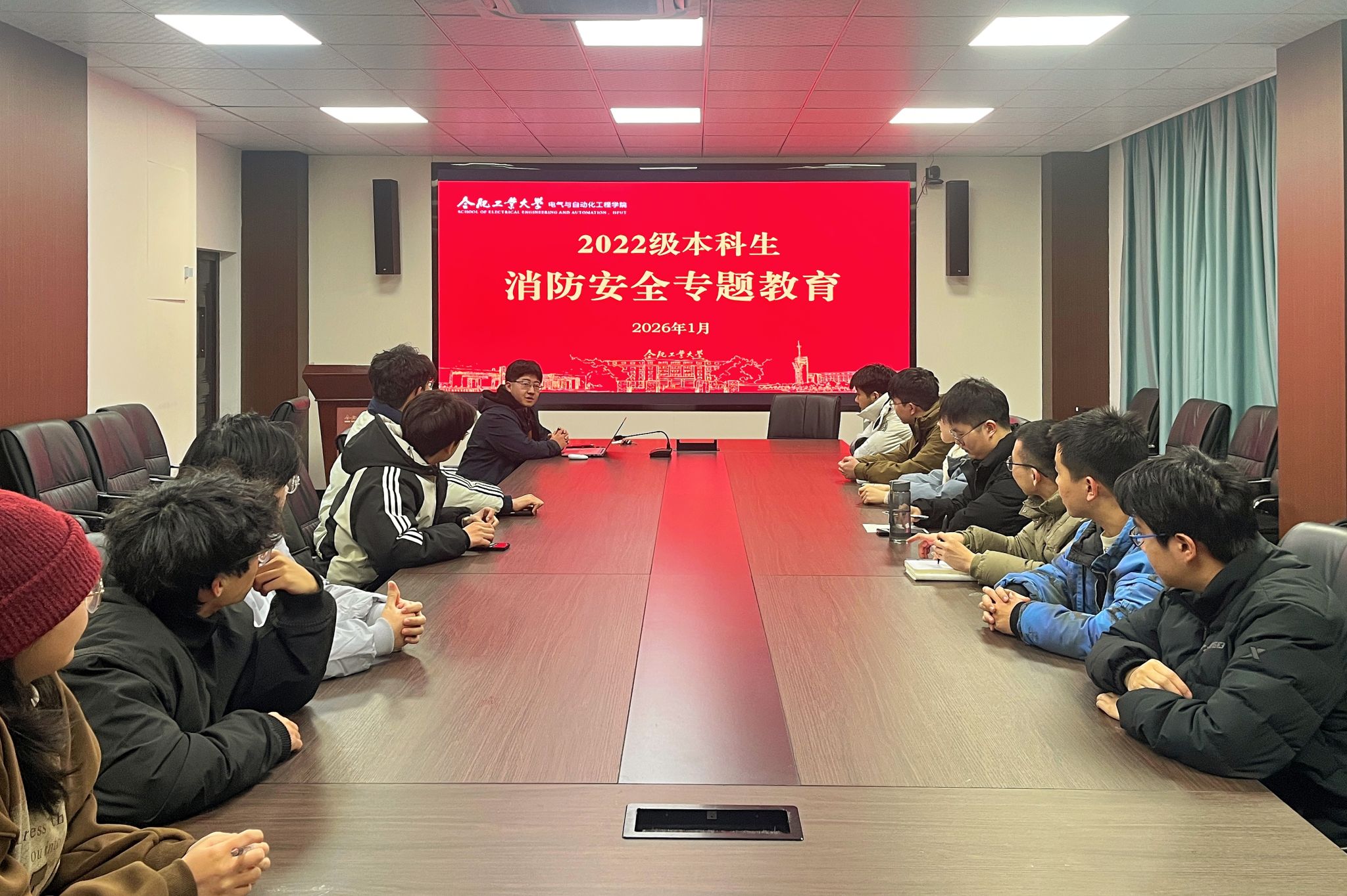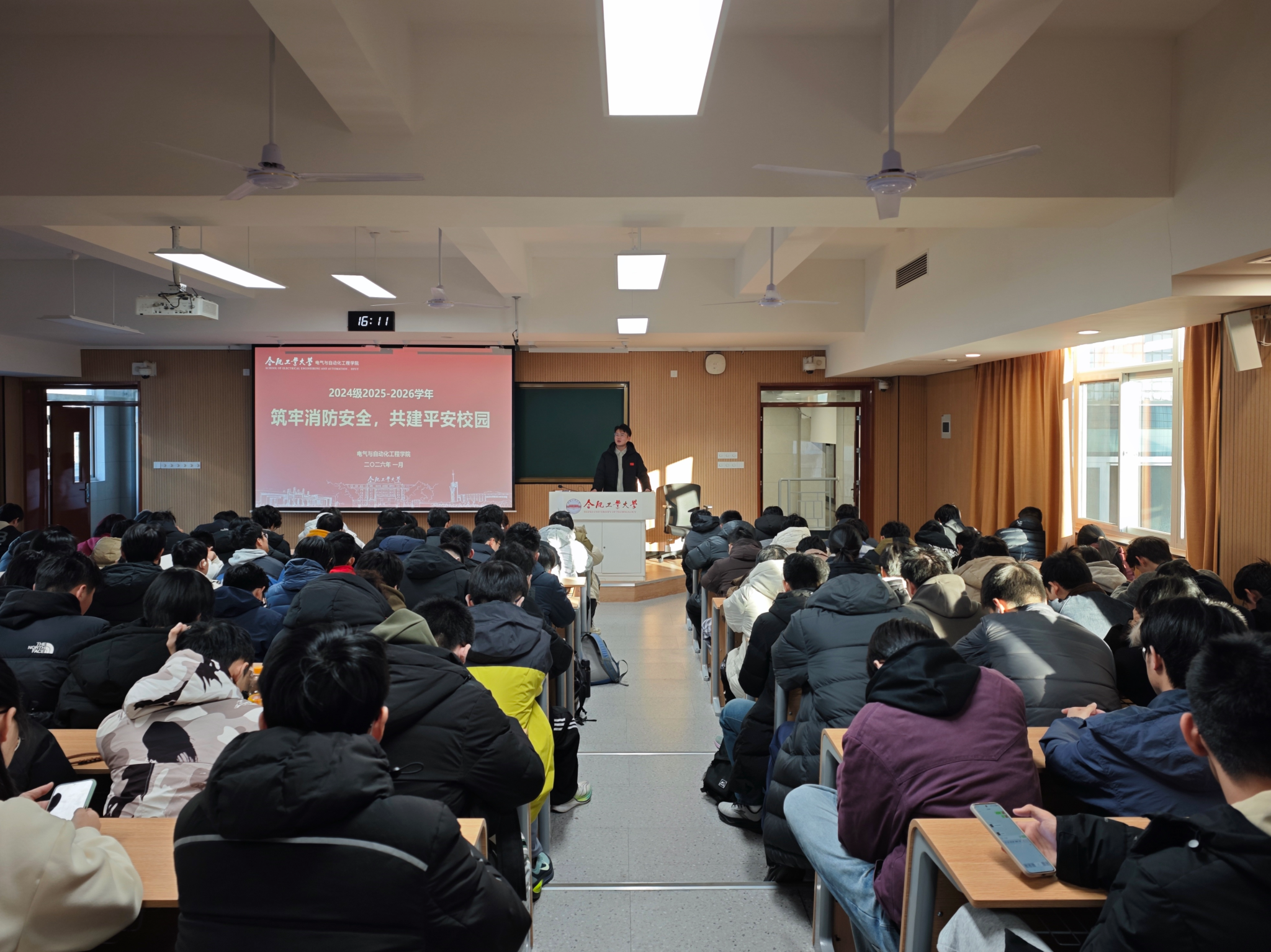 各年级结合学生特点,通过年级大会、主题班会、学生骨干安全教育培训会组织消防安全、防范电信诈骗专题教育。针对大一新生侧重强化基础安全认知;针对高年级学生破除侥幸心理,强调期末安全底线;针对研究生兼顾宿舍与实验室安全,实现全员安全意识同步提升。在消防安全教育环节,各年级通过年级大会,播放火灾警示片、解读宿舍安全管理规定、讲解火灾逃生技巧等形式,向学生普及消防安全知识。在防范电信诈骗专题教育环节,各年分批开展主题班会、学生骨干安全教育培训会,多维度向同学们讲解虚假购物、刷单返利、网络贷款等常见诈骗类型的作案手法,结合“熠盾十步诀”反诈要点,提高同学们的识别能力和防范意识。