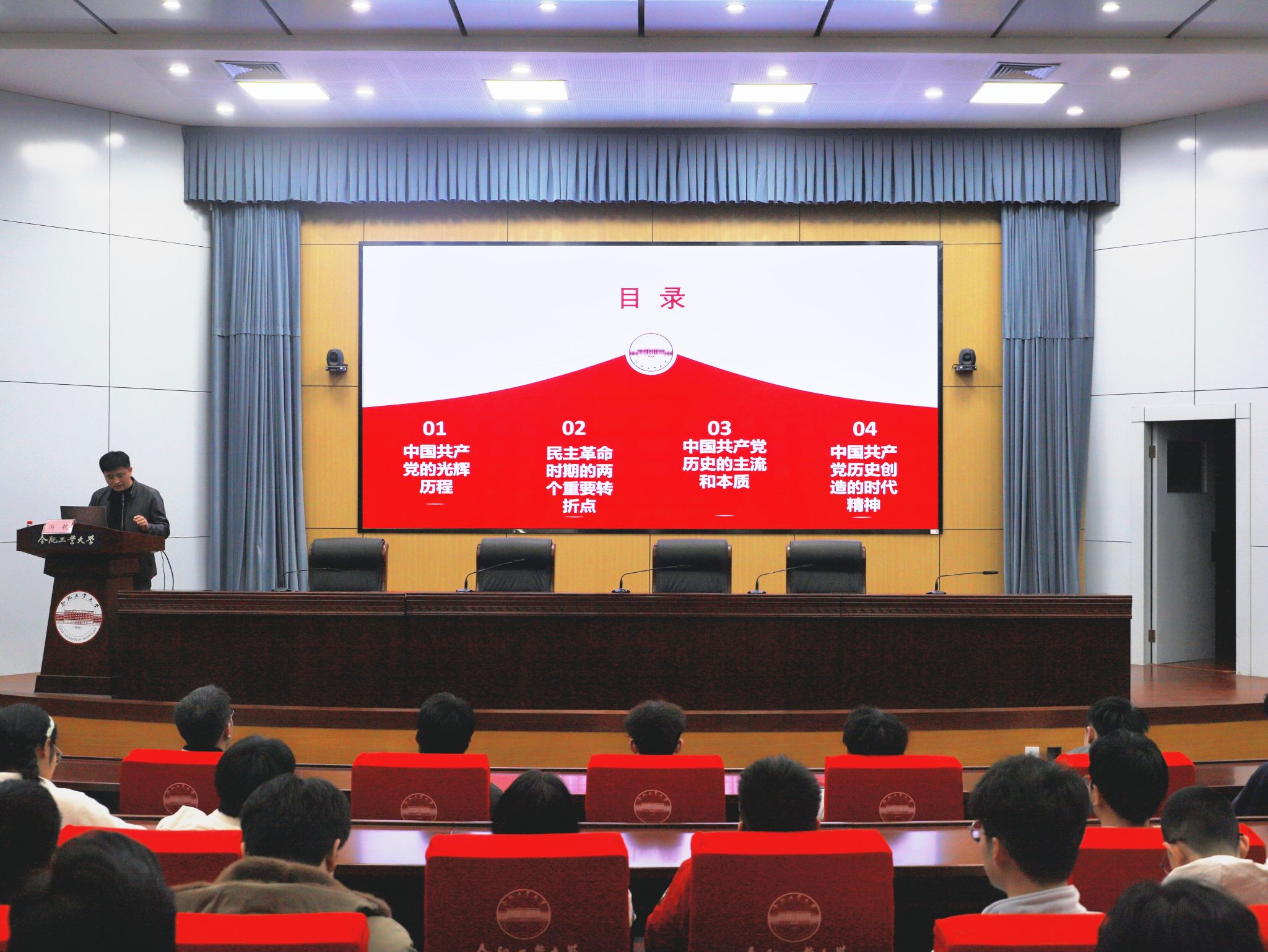 仪式后,冯航以“学习党史强信念,肩负使命承未来”为主题作专题授课。带领同学们回顾中国共产党百年奋斗光辉历程,以详实数据与史实生动讲述党带领人民实现从站起来、富起来到强起来的伟大飞跃,介绍了红船精神、长征精神等中国共产党人精神谱系的重要内容,勉励同学们深刻理解并自觉传承这些宝贵精神财富。