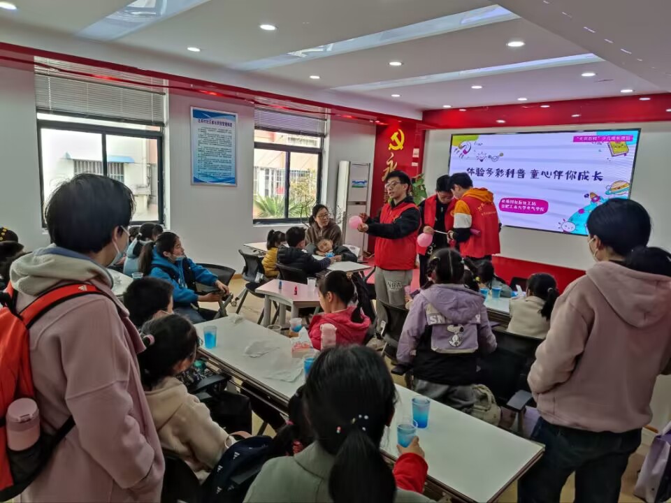 本科生第一党支部联合阳光志愿服务中心前往北苑村社区开展“多彩科普,‘熠’伴成长”科学小实验志愿服务活动。