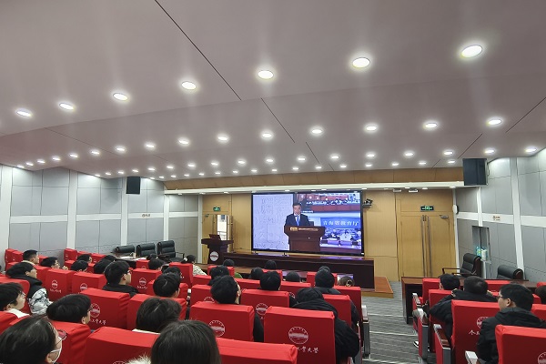 组织学生党员、入党发展对象、入党积极分子在屯溪路校区二楼报告厅集中观看2023年国家宪法日教育系统“宪法晨读”活动直播。