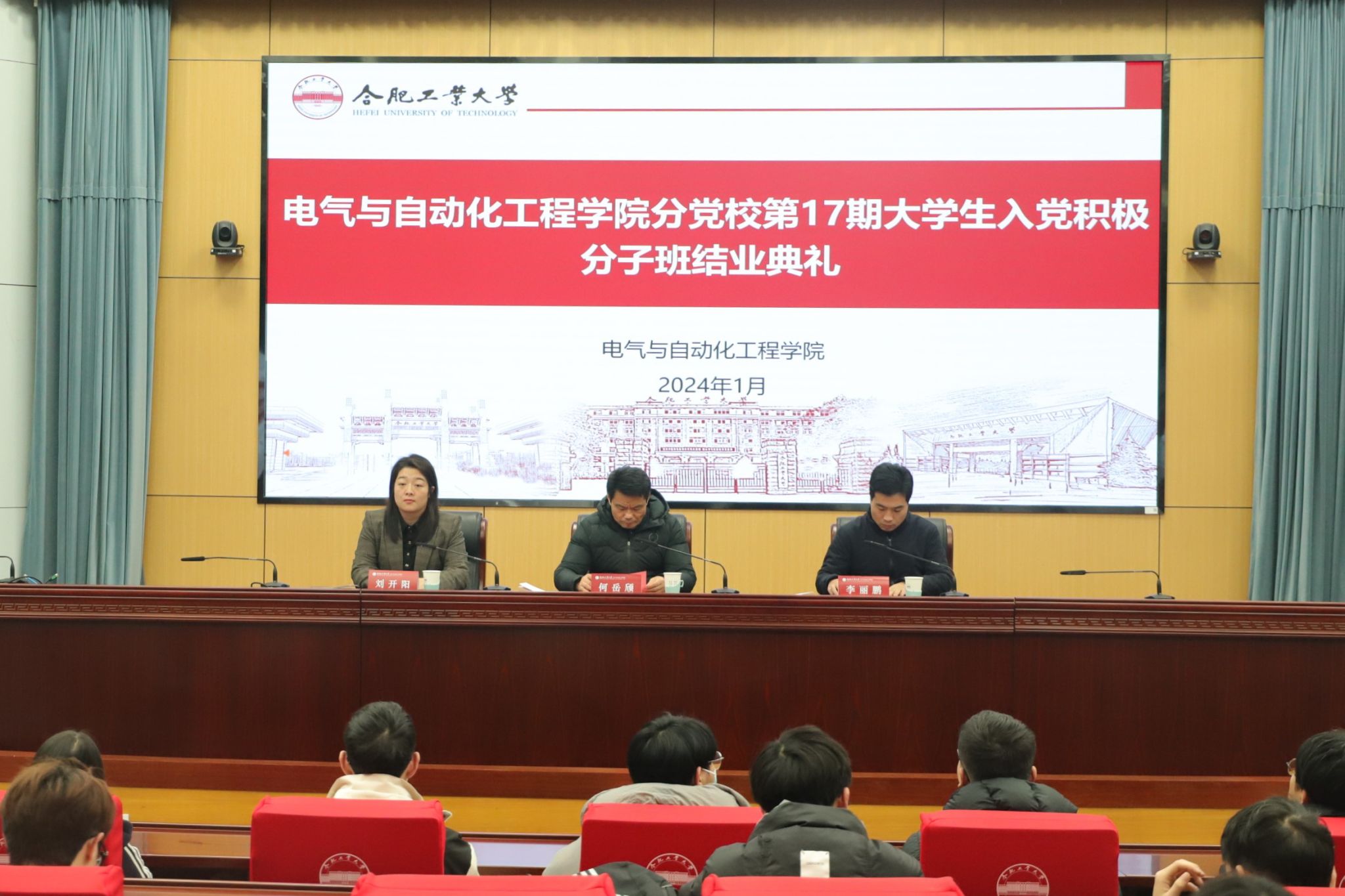 分党校第17期大学生入党积极分子班结业典礼在学术会议中心一楼大报告厅举行,学院党委书记、分党校校长何岳颀、学院党委副书记兼纪委书记、分党校副校长李丽鹏、学院学生工作办公室主任兼团委书记刘开阳、班主任及117名结业学员参加本次结业典礼。