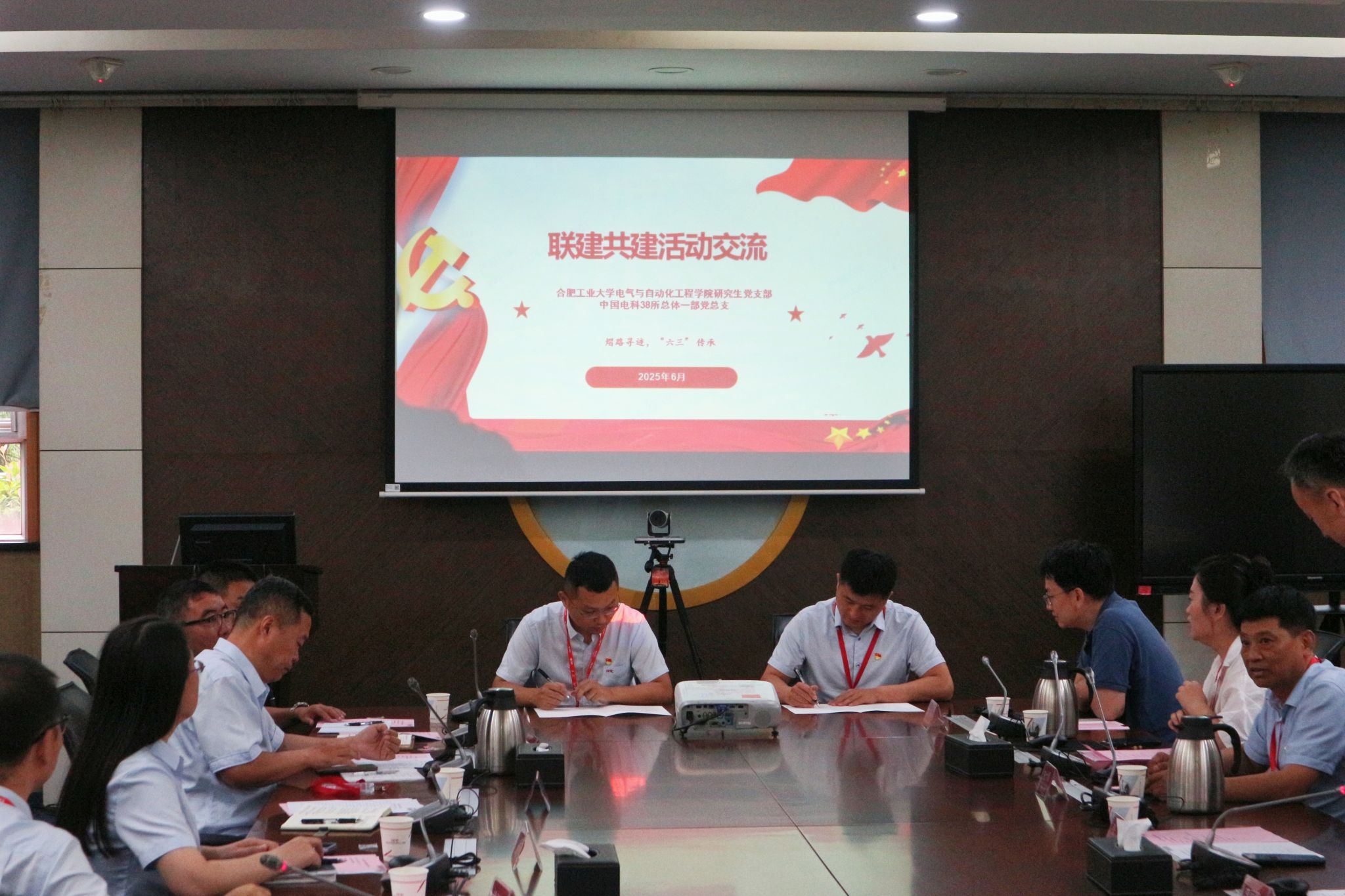 活动中,38所总体一部党总支相关负责人热情致辞,他系统介绍了总支部党建相关工作,阐述了研究所在国防科技工业体系中的战略定位,以及在雷达电子、智能感知、公共安全等领域的尖端科研实力与丰硕成果。党委研究生工作部部长兼学生工作部副部长李丽鹏详细解读了学校“红色1+1+1”研究生党支部共建特色活动的背景和意义,他表示学校在党建、宣传文化等方面有良好的基础,希望通过支部联合共建活动进一步丰富和完善研究生育人体系。午夜AV